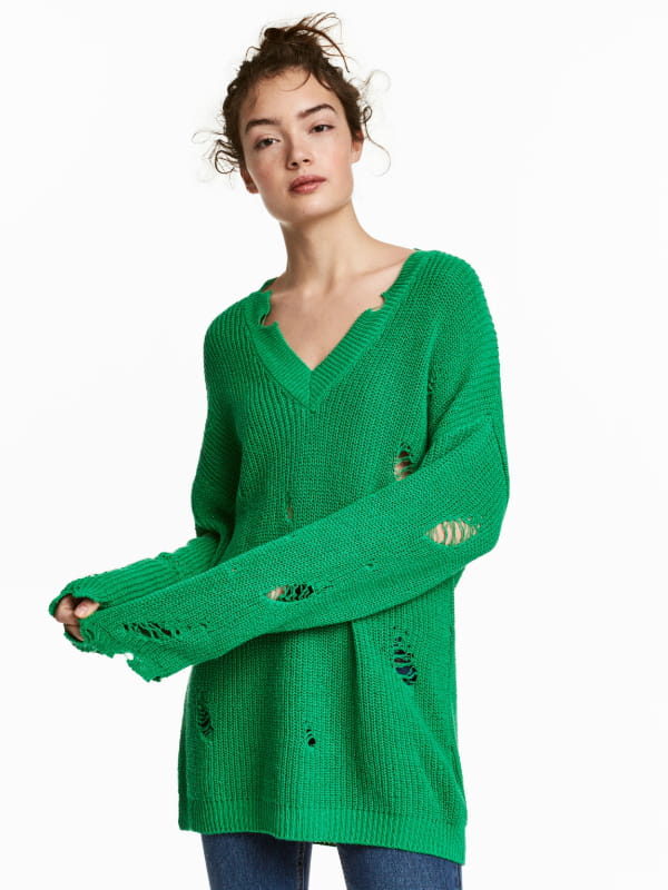 Pull large en maille de coton verte à détails usés d'H&M