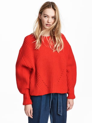 Pull court en maille lâche rouge à manches longues bouffantes d'H&M