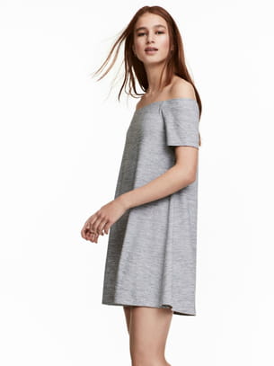 Robe courte à épaules nues et manches courtes en jersey gris chiné d'H&M