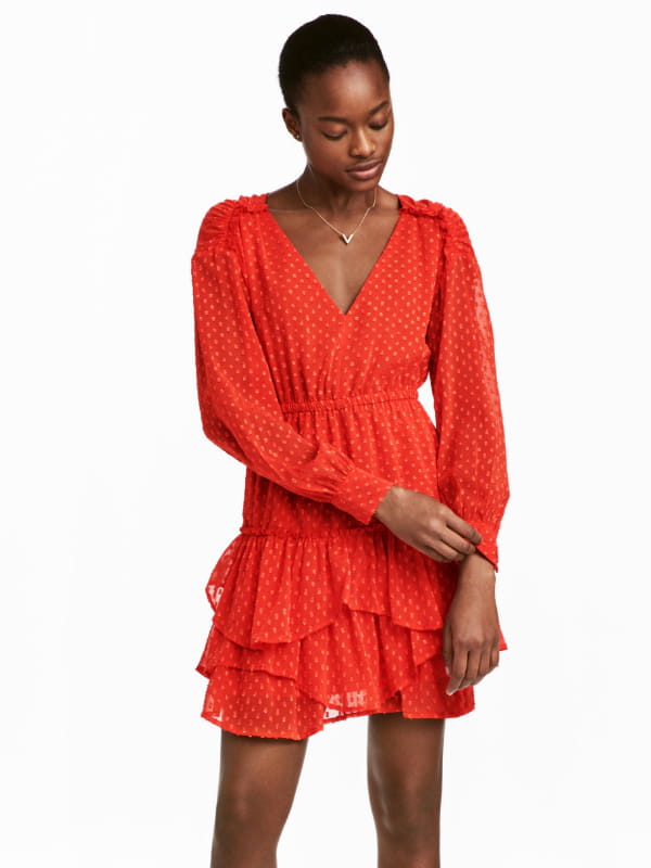 Robe courte volantée en mousseline rouge à pois d'H&M
