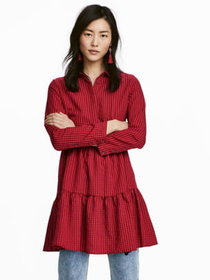 Robe rouge à carreaux et découpes à la taille avec jupon évasé et volanté d'H&M