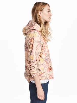 Sweat-shirt en molleton abricot, à imprime fleuri, capuche et poche kangourou d'H&M