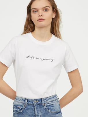 Haut en jersey de coton blanc à inscription brodée "Life is a journey" d'H&M