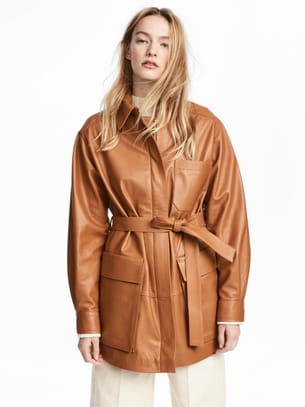 Blouson long en cuir véritable cognac clair, à ceinture amovible d'H&M