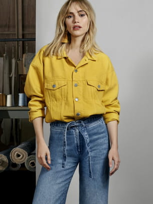 Pantalon ample taille haute en denim délavé à ceinture amovible de H&M
