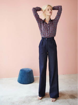 Pantalon taille haute large en denim brut Made in Paris d'Elise Chalmin