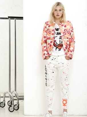 Pantalon slim 7/8ème en denim blanc à imprimé tacheté de Parosh