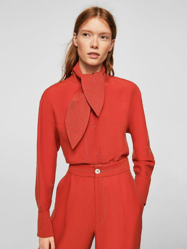 Blouse à nœud et coutures contrastantes rouge de Mango
