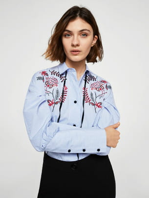 Chemise à broderies florales bleu ciel de Mango