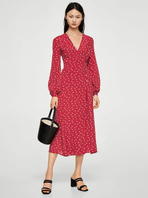 Robe cache-cœur longue à pois rouge de Mango