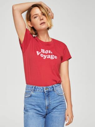T-shirt imprimé "Bon voyage" à manches courtes rouge de Mango