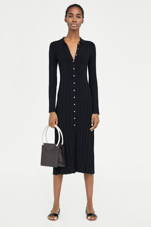 Robe noire midi côtelée de Zara