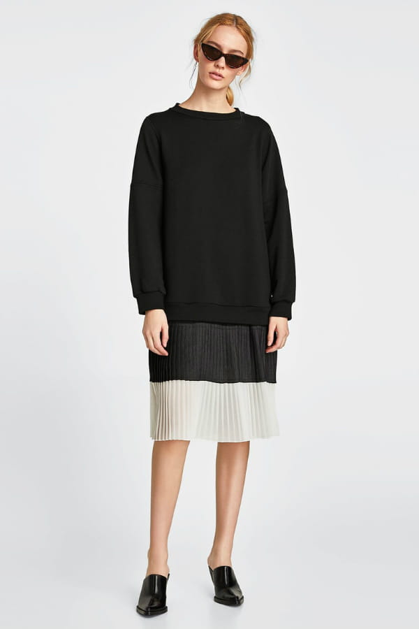 Robe noire sweat en trompe l'œil avec jupe plissée noir et blanche de Zara