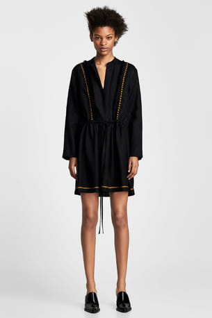 Robe noire courte ceinturée avec liseré jaune de Zara