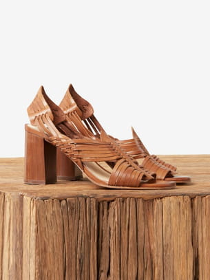 Sandales tressées à talon couleur cognac de Comptoir des Cotonniers