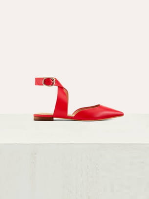 Escarpins plats ouverts à bout pointu et bride cheville en cuir rouge de Maje