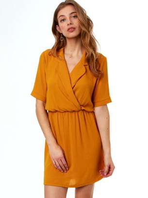 Robe à manches courtes nouée à la taille moutarde de Etam