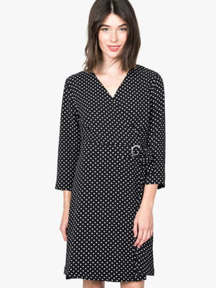 Robe à manches 3/4 boucles à pois noire de Gémo