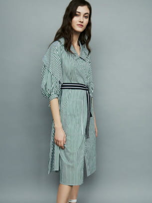 Robe chemise déstructurée à rayures verte de Maje