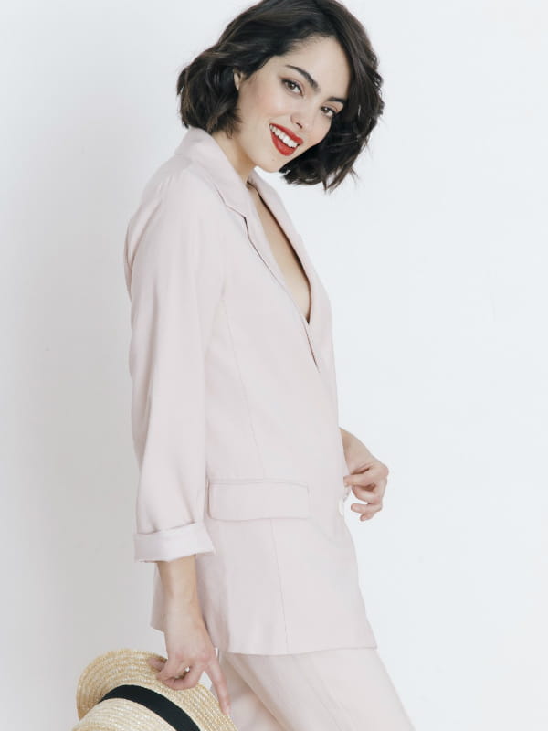 Veste à boutonnière croisée rose poudré de Grace & Mila