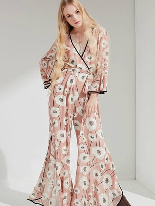 Combinaison évasée à fleurs rose de Lucca Couture chez Urban Outfitters