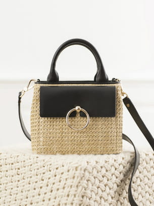 Petit sac tressé à détails en cuir noir et bandoulière amovible de Claudie Pierlot