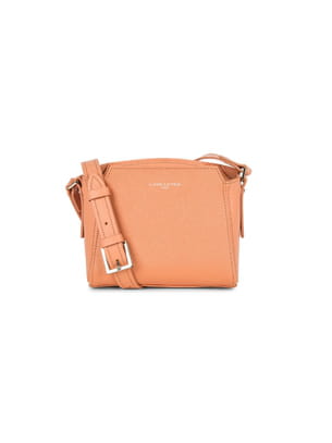 Petit sac trotteur orange pastel en cuir de vachette avec des finitions argentées de Lancaster