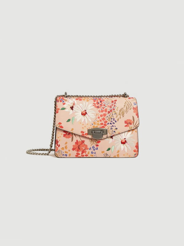 Sac nude à imprimé floral avec détails brodés et anse métallique de Mango