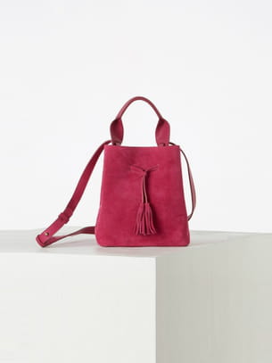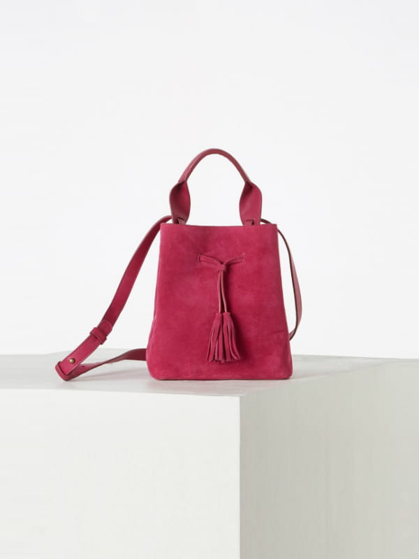Mini sac seau en suède fuschia à bandoulière amovible de Gérard Darel