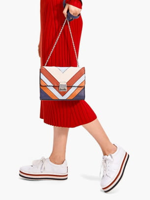 Sac à bandoulière à patchwork beige, orange, marine et rouge en simili de Stradivarius