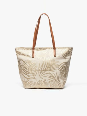 Sac cabas à imprimé feuilles de palmier dorée sur fond beige de Gémo