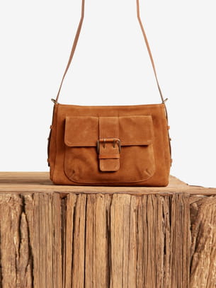 Sac camel en daim avec poche sur le devant et anse réglable de Comptoir des Cotonniers