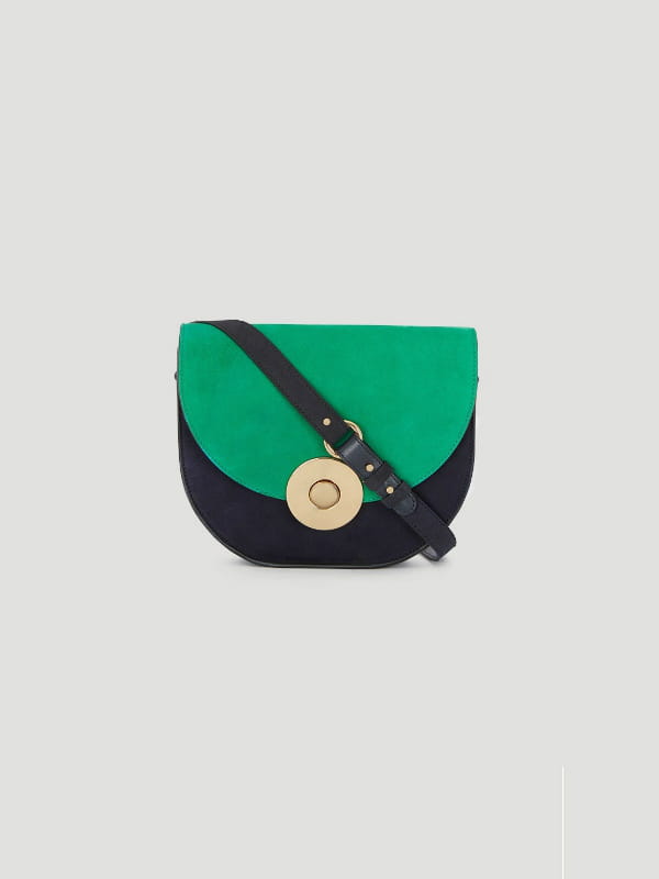 Sac à bandoulière vert et bleu marine en cuir de chèvre de Tara Jarmon