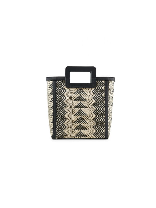 Sac cabas rigide noir et écru à motifs ethniques de Minelli