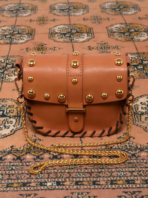 Sac à bandoulière camel et or en cuir lisse clouté de Leon & Harper