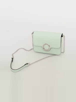 Sac à bandoulière vert pastel avec anneau en métal argenté sur le devant de Pimkie