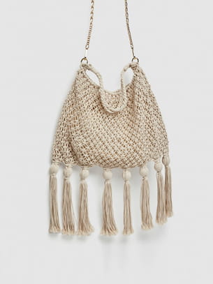 Sac seau en coton cru décoré de pompons avec bandoulière chaîne amovible de Zara