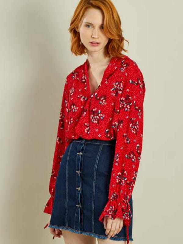Blouse à manches pagodes imprimées rouges de Kiabi