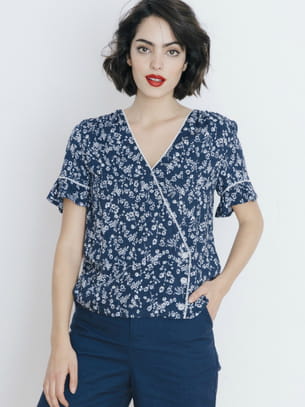 Top court à manches courtes imprimé fleuri bleu de Grace & Mila