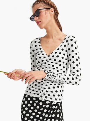 Top à manches longues blanc à pois noirs de Stradiavrius