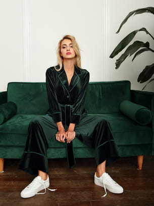 Combinaison pantalon en velours vert bouteille avec ceinture nouée de Lucia Berutto Europe sur ASOS Marketplace
