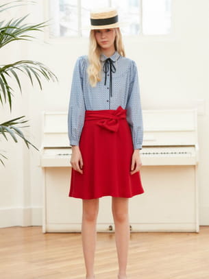Jupe fluide rouge avec nœud à la taille de Claudie Pierlot