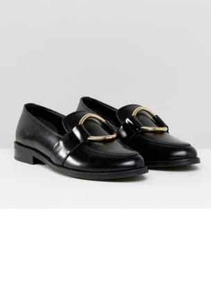 Mocassins en cuir noir vernis ornés d'une grosse boucle dorée d'Asos