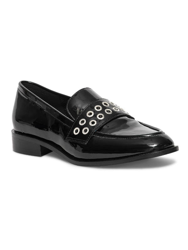 Mocassins noirs vernis ornés d'œillets en métal argenté de Eram