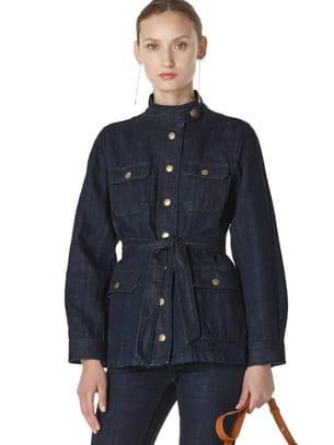 Veste ceinturée en denim de coton et lin japonais indigo de APC