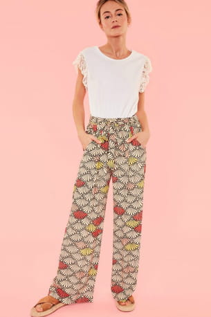 Pantalon taille haute imprimé coquillage rose de Suncoo