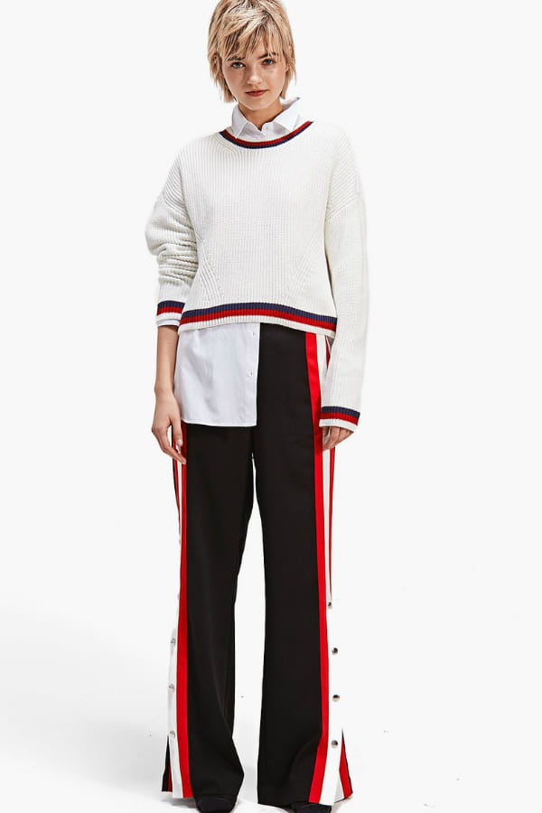 Pantalon à bandes et à pressions noir et rouge de Stradivarius