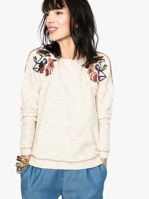 Pull blanc cassé à broderies florales au niveau des épaules de Gémo
