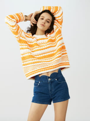 Pull en grosse maille jaune et blanc coupe oversize de Maje