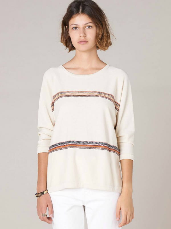 Pull blanc oversize avec frises effet jacquard en perles de Sessùn